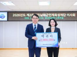 (재)남해군인재육성재단은 동남해농협 박귀이 상임이사가 200만 원, 불지암에서 100만 원, 보물섬해녀언니 하은숙 대표가 100만 원, 보광운수 김일남 대표가 150만 원의 인재육성기금을 기탁했다고 밝혔다.