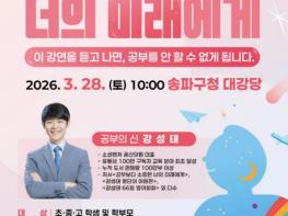 서울 송파구가 ‘공부의 신’으로 알려진 강성태 공신닷컴 대표를 초청해 학부모 특강을 연다. 강연은 3월 28일 오전 10시 송파구청 대강당에서 진행된다.이번 강연은 ‘2026 송파런 학부모 특강’ 2회차로,