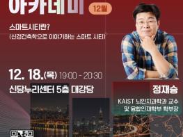 서울 중구가 오는 18일 저녁 7시 신당누리센터 5층 대강당에서 정재승 교수를 초청해 다섯 번째이자 올해 마지막 '찾아가는 중구 도시애 아카데미'를 연다.이번 아카데미는 ‘스마트시티란? 신경건축학으로