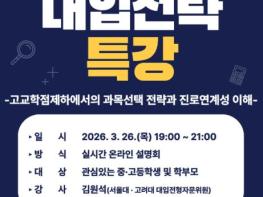 서울 강동구는 2028학년도 대입제도 변화에 대비하기 위해 오는 3월 26일(목) 오후 7시에 온라인 대입전략 특강을 개최한다고 17일 밝혔다.이번 특강은 평소 참여가 어려운 직장인 학부모의 편의를 고려해