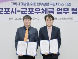 군포시는 3월 12일 군포시청에서 군포우체국과 사회적 고립가구 지원을 위한 ‘안부살핌 우편서비스’ 업무협약을 체결했다고 밝혔다.안부살핌 우편서비스는 전국적인 인프라를 갖춘 우체국의 인적 네트워크
