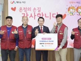 충남 서산시는 전국플랜트노조 충남지부가 어려운 이웃을 위해 참치 선물세트 300개를 기탁했다고 밝혔다.시는 지난 19일 시청 시장실에서 이완섭 서산시장, 고현상 전국플랜트노조 충남지부장 등이 참석한