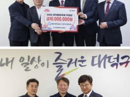 대전 대덕구는 20일 MG새마을금고 대덕구협의회와 대전청과㈜로부터 ‘2026 대덕물빛축제’의 성공적인 개최를 위한 후원금 각각 1000만원을 전달받았다.이날 후원금 전달식에는 MG새마을금고 대덕구협의회