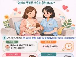 구로구가 출산 초기 산모의 모유수유 부담을 덜기 위한 방문형 지원사업을 새롭게 추진한다.구로구는 이달부터 출산가정을 대상으로 모유수유 전문가가 직접 가정을 방문하는 ‘찾아가는 구로맘 수유 온(溫)