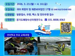 경기도해양수산자원연구소는 귀어 희망자의 어촌 정착을 지원하기 위해 4월 10일까지 ‘2026년 2기 귀어학교’ 교육 프로그램 참가자를 모집한다.교육은 4월 27일부터 6월 5일까지 약 6주간 경기도귀어학교