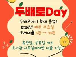 태백시는 시민들의 문화 향유 기회를 확대하고 독서문화 활성화를 위해 도서관 ‘문화가 있는 날·두배로데이’를 매주 수요일로 확대 운영한다고 밝혔다.기존에는 매월 마지막 주 수요일에 한해 운영되던 ‘