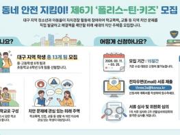 대구광역시 자치경찰위원회는 자치경찰제도에 대한 이해를 높이고, 청소년들이 직접 지역 사회의 치안 문제를 고민하며 해결해 나가는 ‘제6기 폴리스-틴(Teen)·키즈(Kids)’ 대원을 모집한다.이번 프로그램