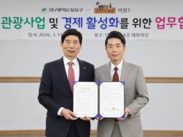 대구 달서구는 지역 관광산업 활성화와 관광객 유치 확대를 위해 13일 구청 회의실에서 이월드와 업무협약(MOU)을 체결했다. 이번 협약은 민·관 상생 협력을 기반으로 대구시 신청사 건립 예정지와 두류공