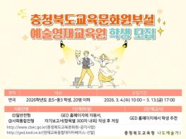충청북도교육청 직속기관 교육문화원부설예술영재교육원은 4일, 연극을 통해 예술적 재능을 키울 2026학년도 신입생을 모집한다고 밝혔다.예술영재교육원은 단순한 연기 지도를 넘어, 학생들의 잠재된 예술