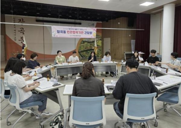 시흥시 장곡동은 지난 7월 23일 동 행정복지센터 내 강당에서 관내 공공임대아파트(LH17, 18, 19, 23단지), 복지기관, 의료기관, 맞춤형복지팀 등 민관 주체가 참석한 가운데 지역 내 위기가구 지원 방안을 논의하는 간담회를 개최했다.