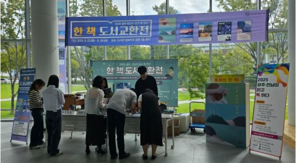 전남대학교 도서관은 지난 9월 23일부터 9월 26일까지 나흘간 도서관 정보마루 동편 1층에서 열린 ‘2025 한 책 도서교환전’이 성황리에 마무리됐다고 밝혔다.