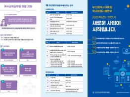 부산광역시교육청학교행정지원본부는 2025학년도 하반기부터 확대 시행되는 학교 지원 신규 사업 4가지를 소개하는 홍보 리플릿을 제작해 부산 관내 모든 학교에 배포한다고 14일 밝혔다.