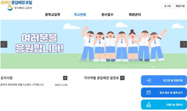 경북교육청은 12월 1일부터 2026학년도 중학교 입학 배정을 위한 원서 접수를 전국 최초로 온라인 시스템을 통해 시행한다고 밝혔다.