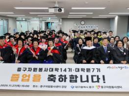 대구 중구는 지난 27일 중구 자원봉사센터에서 ‘2025년도 중구자원봉사대학(14기)·대학원(7기) 졸업식’을 개최했다.
