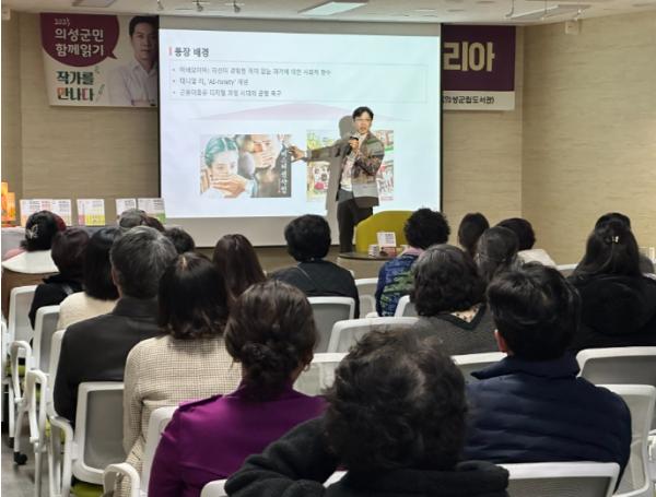김주수 의성군수는 “이번 강연을 통해 군민들이 빠르게 변화하는 시대 흐름을 이해하고 미래를 준비하는 데 도움이 됐기를 바란다”며 “내년에도 다양한 분야의 저자를 초청해 군민들의 독서문화 향유 기회를 지속 확대해 나가겠다”고 밝혔다.