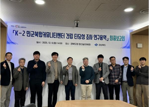 경상북도는 9일 경북도청 회의실에서 ‘K-2 민군복합커뮤니티 센터 건립 타당성 조사 연구용역’ 최종 보고회를 개최했다.