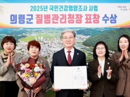 의령군은 지난 8일 ‘2025년 국민건강영양조사’ 협력 기관 중 조사 품질 및 참여도 제고 분야에서 우수 유공기관으로 선정돼 질병관리청장 기관 표창을 수상했다고 밝혔다.