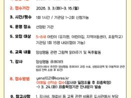 교육 대상은 5세~8세 어린이로 신청기관별 1회 1시간씩 1~2회 운영된다.