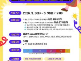 모집 기간은 오는 31일까지이며, 공주·보령·논산·금산·부여·서천·청양·예산·태안 등 인구감소지역에서 창업 예정인 청년 예비창업가 및 3년 이내 초기 창업가라면 신청할 수 있다.