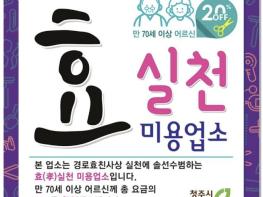 시 관계자는 “어려운 경영 환경 속에서도 이·미용 서비스 요금을 할인하는 것은 어르신을 공경하는 효 실천 문화를 만들기 위한 것”이라며 “앞으로도 민·관 협력을 통해 시민 모두가 행복한 청주시를 만들겠다”라고 말했다.