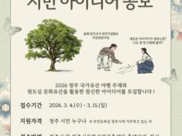 청주시와 청주시문화산업진흥재단은 오는 3월 15일까지 ‘2026 청주 국가유산 야행’ 시민 아이디어 공모를 진행한다고 밝혔다.
