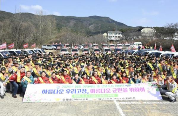 이번 캠페인에는 각 읍면 28개대 의용소방대가 참여해 120여대의 차량을 동원해 ‘산불조심’ 펼침막(현수막)을 부착한 뒤 퍼레이드 형식으로 진행했으며, 수덕사 주차장에 집결해 산불조심 선언문을 낭독하는 등 봄철 산불에 대한 경각심을 높였다.