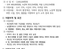 ‘가금 및 기타가축 사육농가 지원사업’은 시설 현대화를 통한 축사 환경 개선, 방역 물품 지원 등을 통한 생산성 향상이 주요 내용이다.