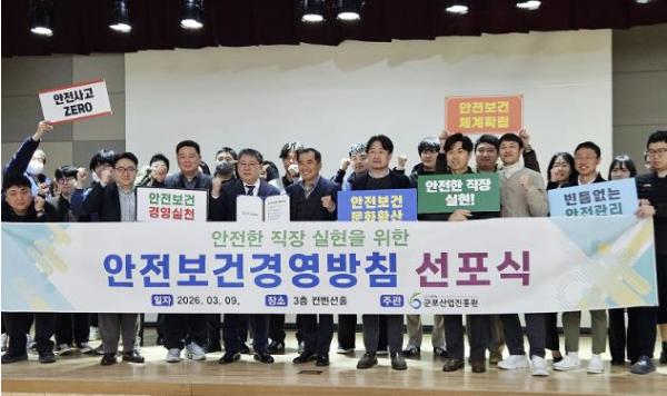 군포산업진흥원은 지난 9일 청사 3층 컨벤션홀에서 기관 임직원이 참석한 가운데 '2026년 안전보건경영 선포식'을 개최했다.