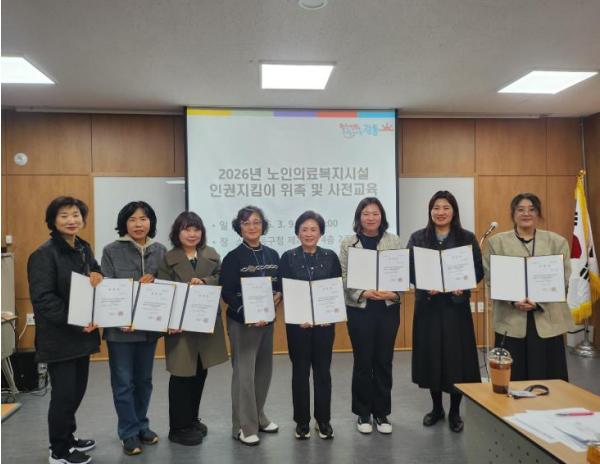 이에 구는 지난 9일 ‘2026년 강동구 노인의료복지시설 인권지킴이 위촉식 및 사전교육’을 진행했다. 이날 위촉식에서 인권지킴이 8명에게 위촉장을 수여하고, 활동에 대한 사전 교육을 실시했다.