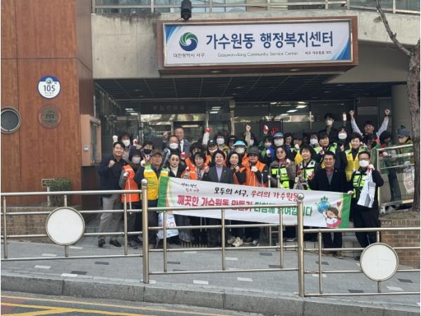 대전 서구 가수원동 행정복지센터는 청사와 상점가 및 가수원초등학교 일원에서 봄맞이 환경정화 캠페인을 펼쳤다고 12일 밝혔다.
