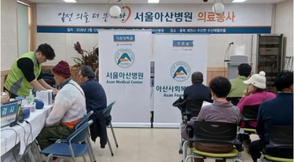 행사를 주관한 수산면 주민자치위원회 김택수 위원장은 “작은 병원에 버금가는 의료진과 장비를 갖추고 먼 곳까지 찾아와 지역 주민의 건강을 돌봐준 서울아산병원 의료진에게 감사드린다”라며 고마움을 전했다.