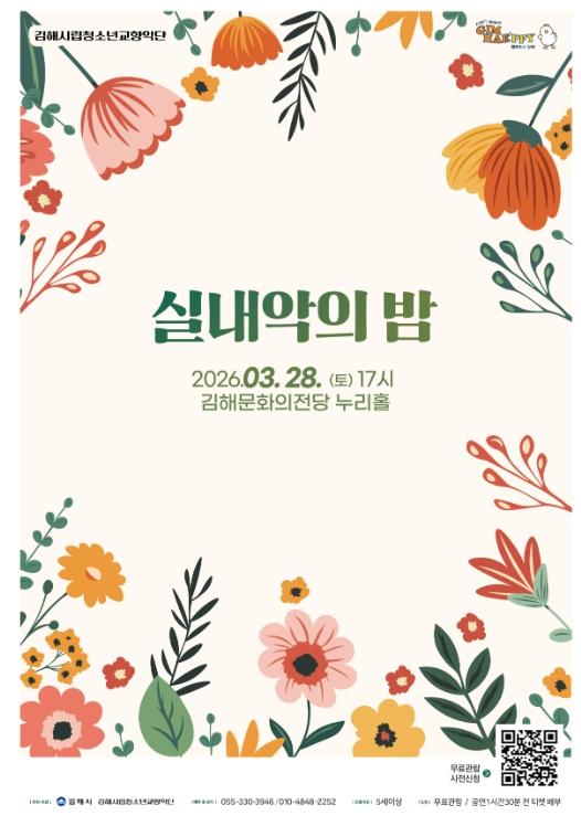 김해시립청소년교향악단은 오는 28일 오후 5시 김해문화의전당 누리홀에서 실내악 연주회 '실내악의 밤'을 개최한다.