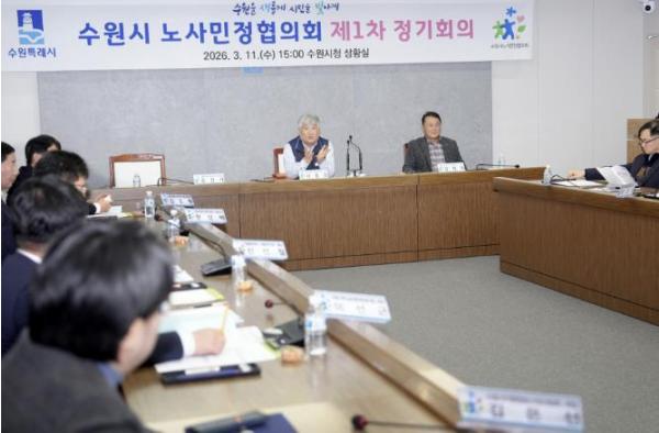 수원시 노사민정협의회는 11일 수원시청 상황실에서 2026년 제1차 수원시 노사민정협의회 정기회의를 열고, ‘2026년 수원시 노사민정 공동선언’을 채택했다.