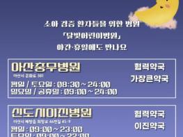 아산시 관계자는 “달빛어린이병원을 통해 야간·휴일 경증 소아 진료 공백을 보완하고, 중증 환자는 대학병원 중심의 권역 의료체계로 대응하고 있다”며 “아이를 키우는 부모들이 밤이나 휴일에도 안심하고 의료 서비스를 이용할 수 있도록 소아 진료 체계를 지속적으로 보완해 나가겠다”고 말했다.