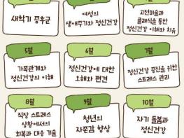 이 밖에도 예술치유를 통한 정신건강 이해, 가족관계와 정신건강, 스트레스 관리와 직장 스트레스 대응, 청년 자존감 향상, 자기돌봄 등을 주제로 매달 강좌를 운영한다. 특히 11월에는 ‘시민과 함께 만드는 정신건강 강좌’를 마련해 시민들이 희망하는 교육 주제를 사전에 신청받아 강좌 내용에 반영할 예정이다.