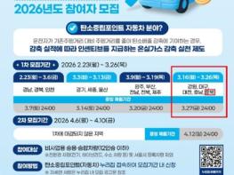 올해 모집 규모는 총 2,267대이며, 3월 16일부터 26일까지 선착순으로 접수한다. 참여를 희망하는 시민은 해당 기간에 탄소중립포인트(자동차) 누리집에 접속해 직접 회원가입 후 신청하면 된다.