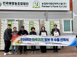 진주시는 지난 12일 문산읍 한국배영농조합법인에서 수출 관계자 8여 명이 참석한 가운데 키위 일본 수출을 위한 선적식을 개최했다고 밝혔다.