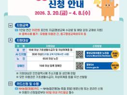 지원 대상은 ▲19세 이상 성인 중 기초생활수급자 및 차상위계층(일반) ▲65세 이상(노인) ▲30세 이상 성인(AI·디지털 분야) ▲19세 이상 등록(장애인복지법) 장애인이며, 총 6천여 명의 시민에게 폭넓은 학습 기회를 제공한다.