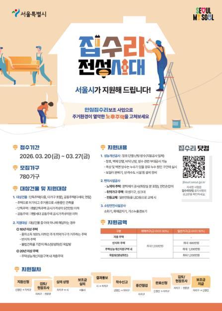 지원 대상은 준공 후 10년 이상 된 주택 중` ▲중위소득 100% 이하의 주거 취약가구 거주 ▲반지하 ▲옥탑방 등이다. ‘주거 취약가구’는 기초생활수급자, 차상위, 중증 장애인, 65세 이상 고령자 등이 해당한다.