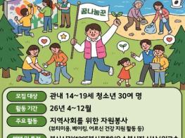 강릉시는 청소년들이 나눔의 가치를 실천하며 건강한 시민으로 성장할 수 있도록 지원하는 ‘2026년 강릉시청소년자원봉사단 '꿈나눔꾼' 2기’ 단원을 23일까지 모집한다고 밝혔다.