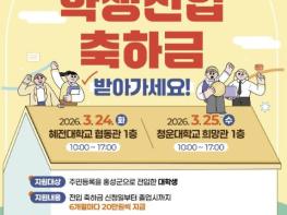 홍성군이 관내 대학생의 전입을 유도하고 학생 전입축하금 신청 편의를 높이기 위해 ‘찾아가는 학생 전입축하금 접수 창구’를 운영한다.
