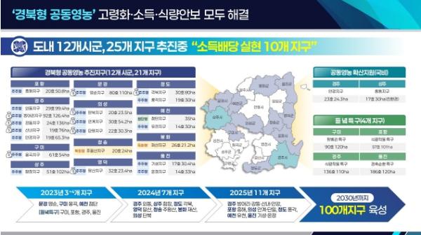 그 외에도 경북형 공동영농의 대표 모델인 문경 영순지구는 배당 3년 차에 접어들었으며, 구미 웅곡지구와 영덕 달산지구가 2년 차, 의성 단북지구를 비롯한 7개 지구가 첫 배당을 실시했다. 향후에도 농가배당은 더욱 확대될 예정이다.