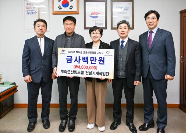부여군산림조합 건설기계작업단은 지난 2021년부터 장학사업에 총 1천8백만 원을 기탁하며, 지역의 미래인 학생들을 위해 아낌없는 지원을 이어오고 있다.
