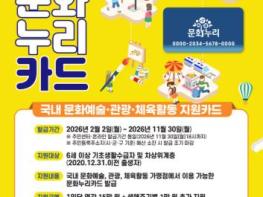 군산시는 취약계층의 문화 향유 기회를 확대하고 문화격차 해소를 위해 ‘2026년 통합문화이용권(문화누리카드) 사업’을 추진한다고 밝혔다.
