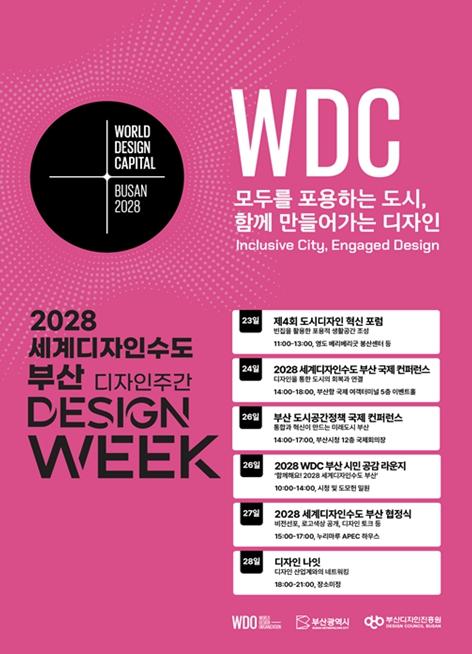 또한 26일에는 시청 및 도모헌 일원에서 2028 세계디자인수도 부산 시민 공감 라운지가 열려 ‘2028 WDC 캠페인’을 전개한다.