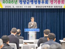 청양군 행정동우회(회장 임수만)가 지난 18일 다목적회관 대회의실에서 ‘2026년 정기총회’를 개최하고, 평생 쌓아온 행정 경험을 바탕으로 지역사회 발전에 앞장설 것을 다짐했다.