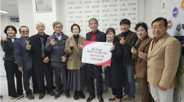 송영도 노인회장과 박종화 마을회장은 “작은 정성이지만 목감동 내 어려운 이웃들에게 따뜻한 위로와 힘이 되길 바란다”라며 “앞으로도 계속해서 마을회, 노인회, 상인회가 함께 나눔 활동을 이어가겠다”라고 전했다.