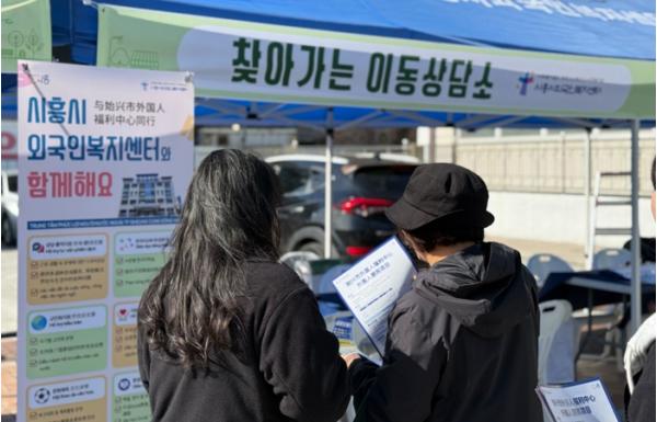 시흥시와 시흥시 외국인복지센터는 지난 3월 19일 정왕어린이도서관 앞 광장에서 이주배경주민의 생활 지원과 정보 접근성 향상을 위한 ‘찾아가는 이동상담소(합동홍보)’를 운영했다.