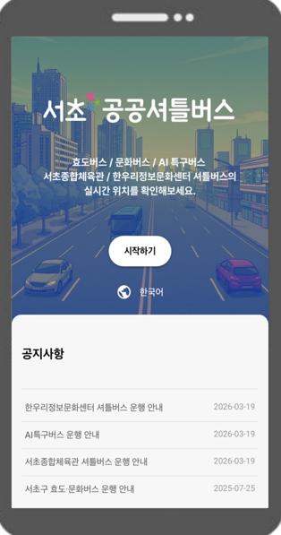 전성수 서초구청장은 “주민 누구나 공공 셔틀버스의 위치와 도착 예정 시간을 정확하게 확인하고 편리하게 이용할 수 있도록 했다”며, “앞으로도 스마트 기술을 행정에 적극 도입해 주민 체감형 서비스를 지속적으로 확대해 나가겠다”고 말했다.