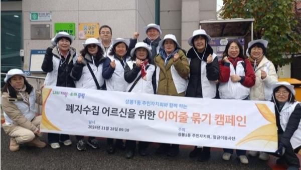 중랑구 상봉1동 깔끔이봉사단이 28일 오전 ‘폐지수집 어르신을 위한 이어줄 묶기 캠페인’을 실시했다.